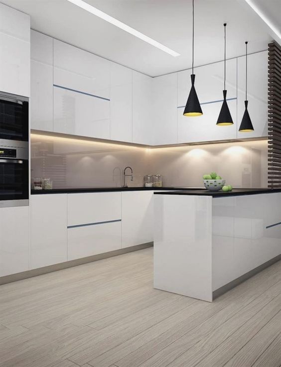 - Кујни со мазни и сјајни површини на кои штом го инсталираме и го поставиме вистинското осветлување, вашата кујна ќе блеска и секогаш ќе изгледа светло и чисто.