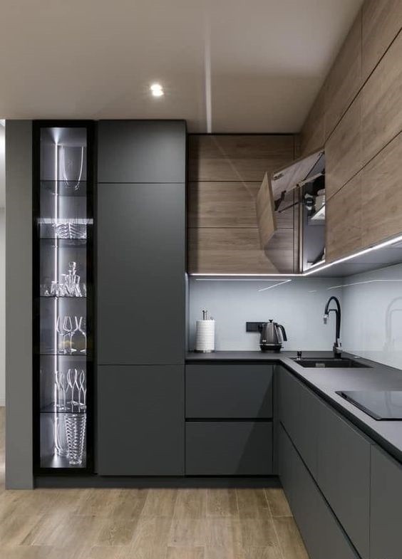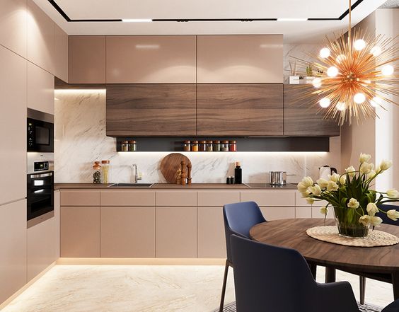 - Кујни со мазни и сјајни површини на кои штом го инсталираме и го поставиме вистинското осветлување, вашата кујна ќе блеска и секогаш ќе изгледа светло и чисто.